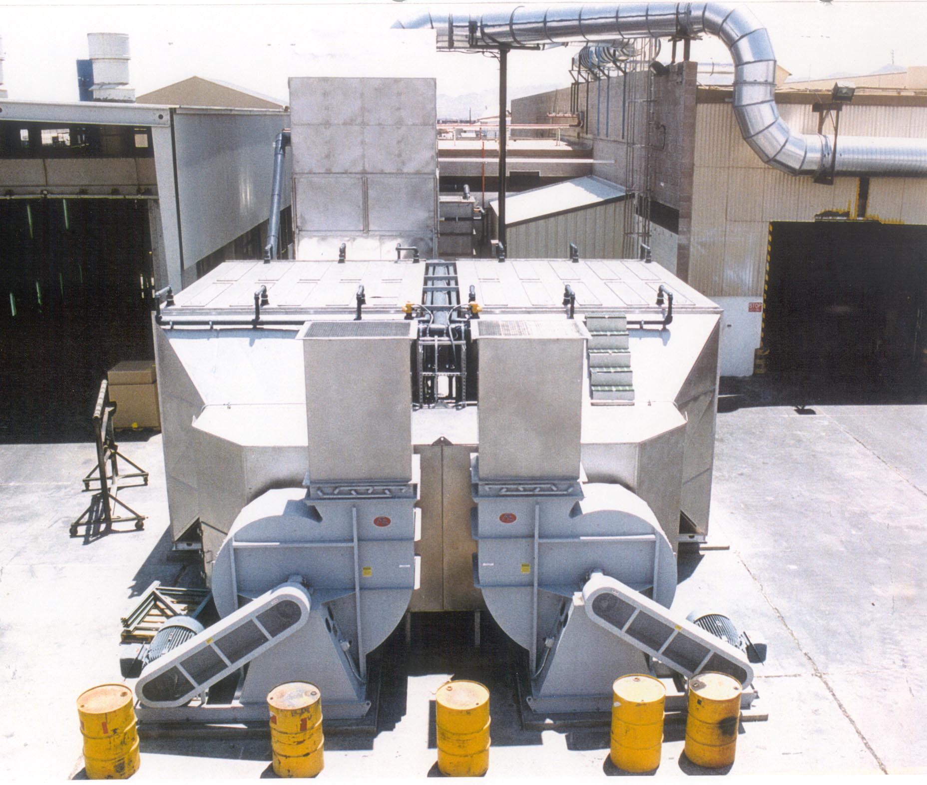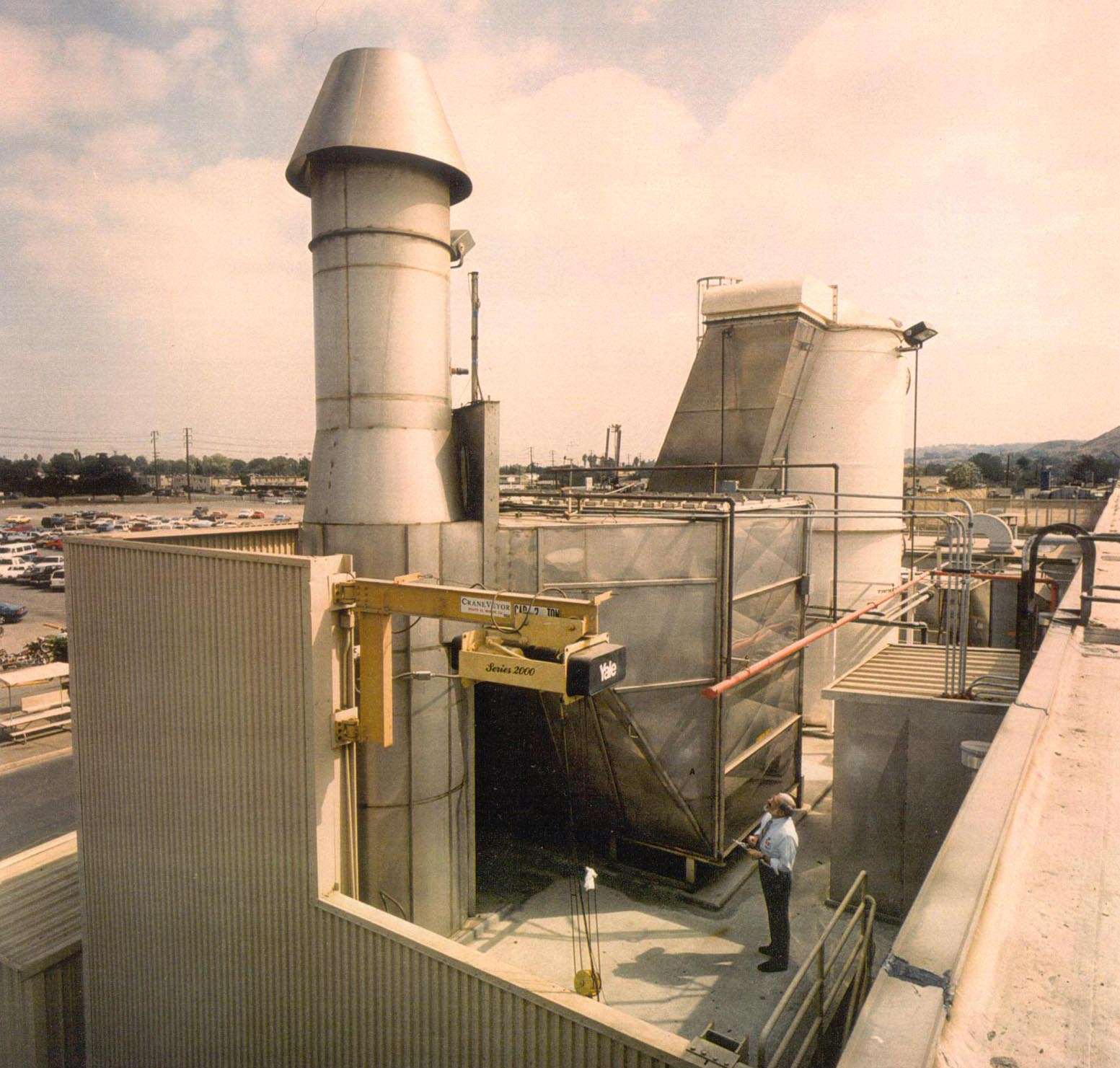 12,000 SCFM Air Pollution Control System at CMP Display Systems Co., Ventura, CA treats the Volatile Organic Compounds that come off the photo etching, coating and spraying process for fabricating and finishing the special aircraft instrumentation panels that are installed in today's highly technical/computerized aircraft. This system has been operational since September 1992. (Available for site visit)