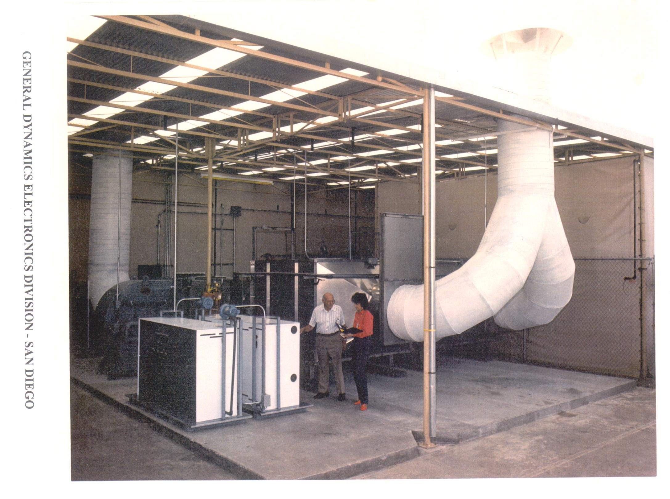 20,000 CFM VOC Emission Control System capable of handling 60 pounds per day at General Dynamics, Electronics Division, San Diego, CA. System has been on-line and maintained the required efficiency since May of 1986, without any carbon change-out being required.